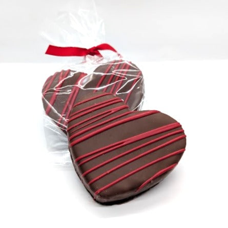 Our peanut butter hearts contain a swoon-worthy peanut butter gianduja with a caramelized cookie crunch.  Available in milk or dark chocolate. Handcrafted in our kitchen.